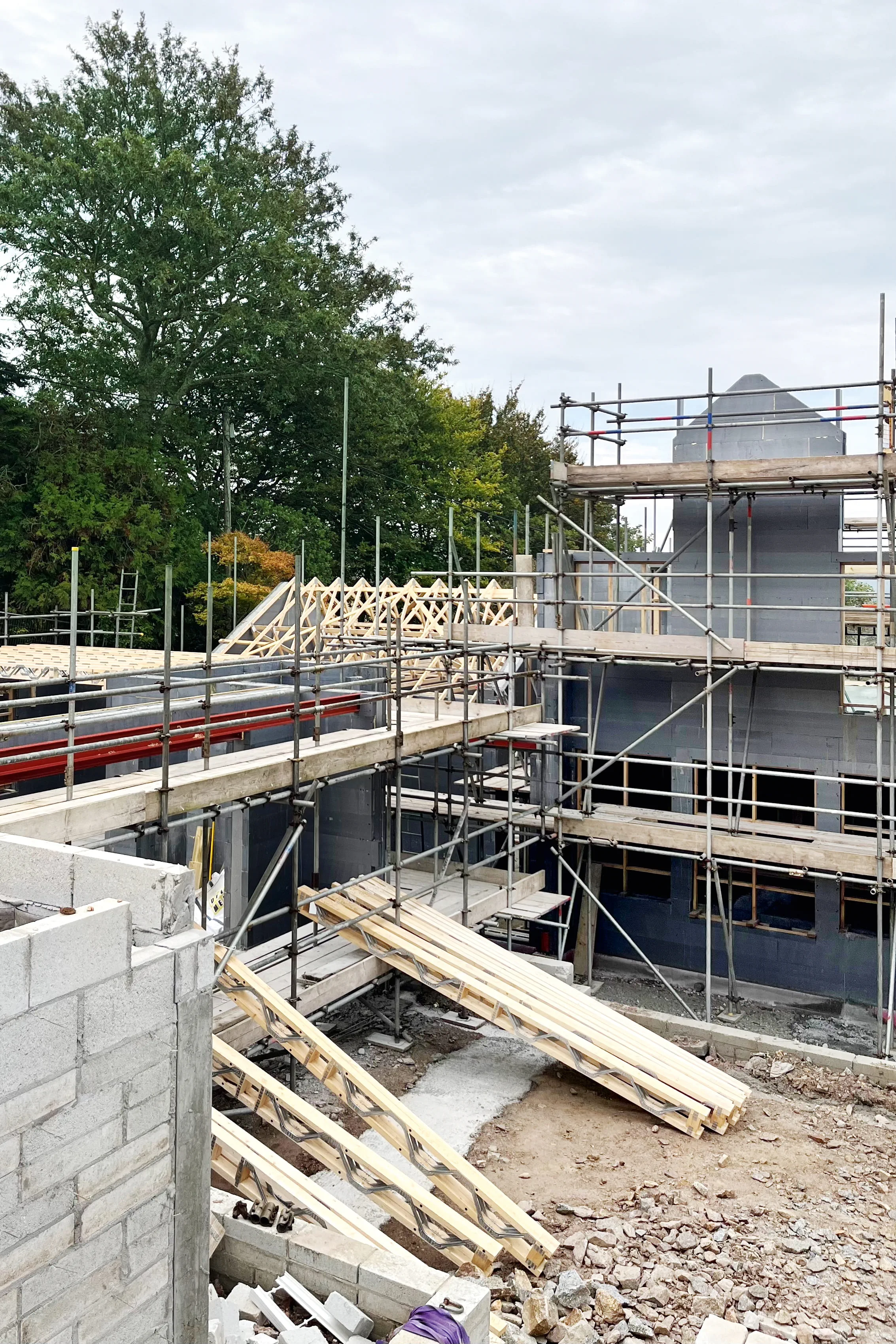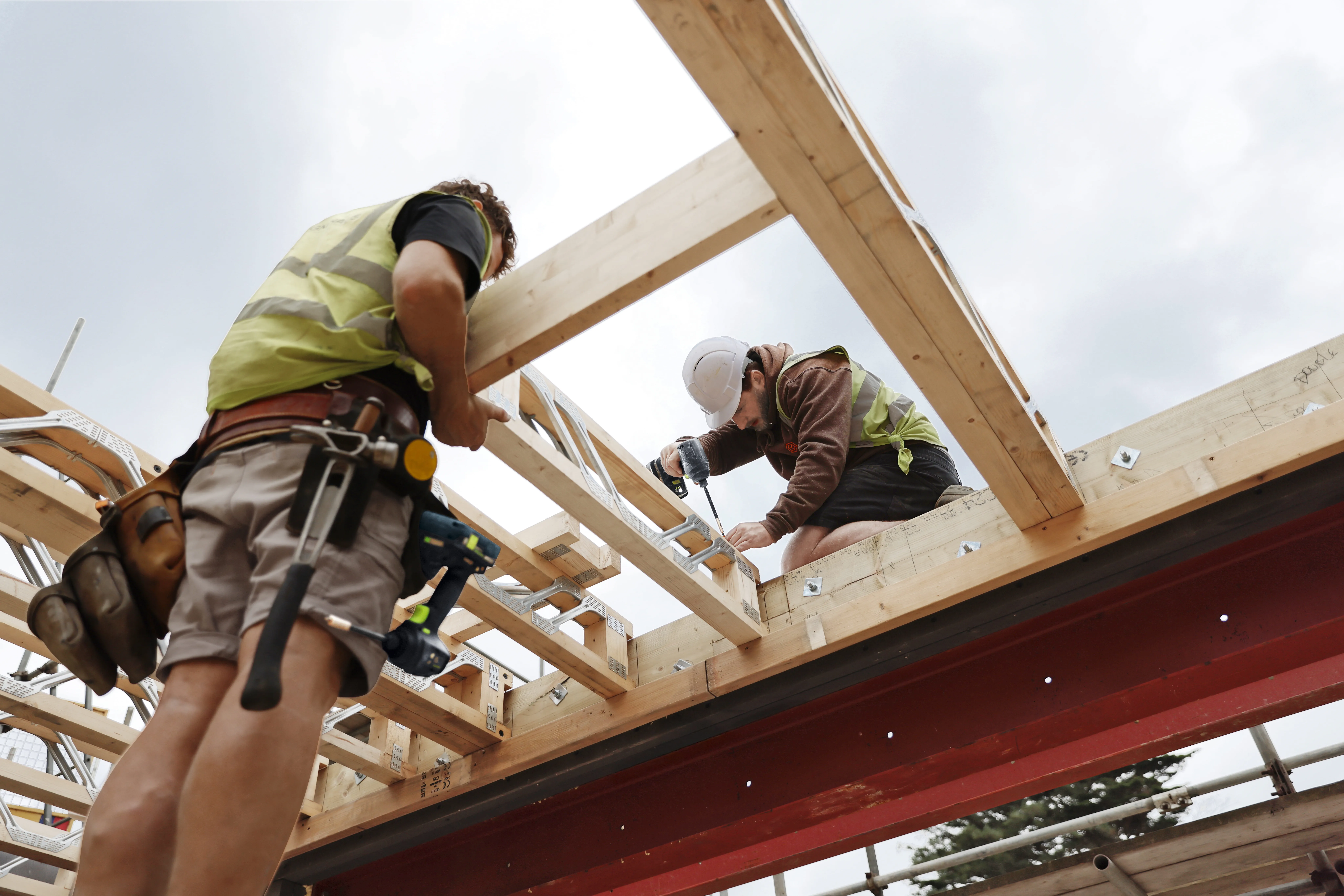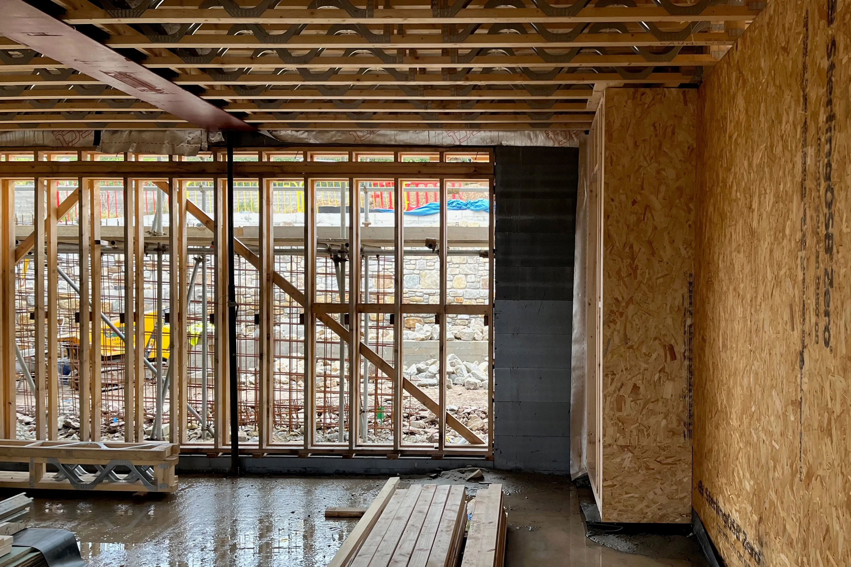 Jak tylko ściana jest na miejscu, przygotowywana jest konstrukcja sufitu.