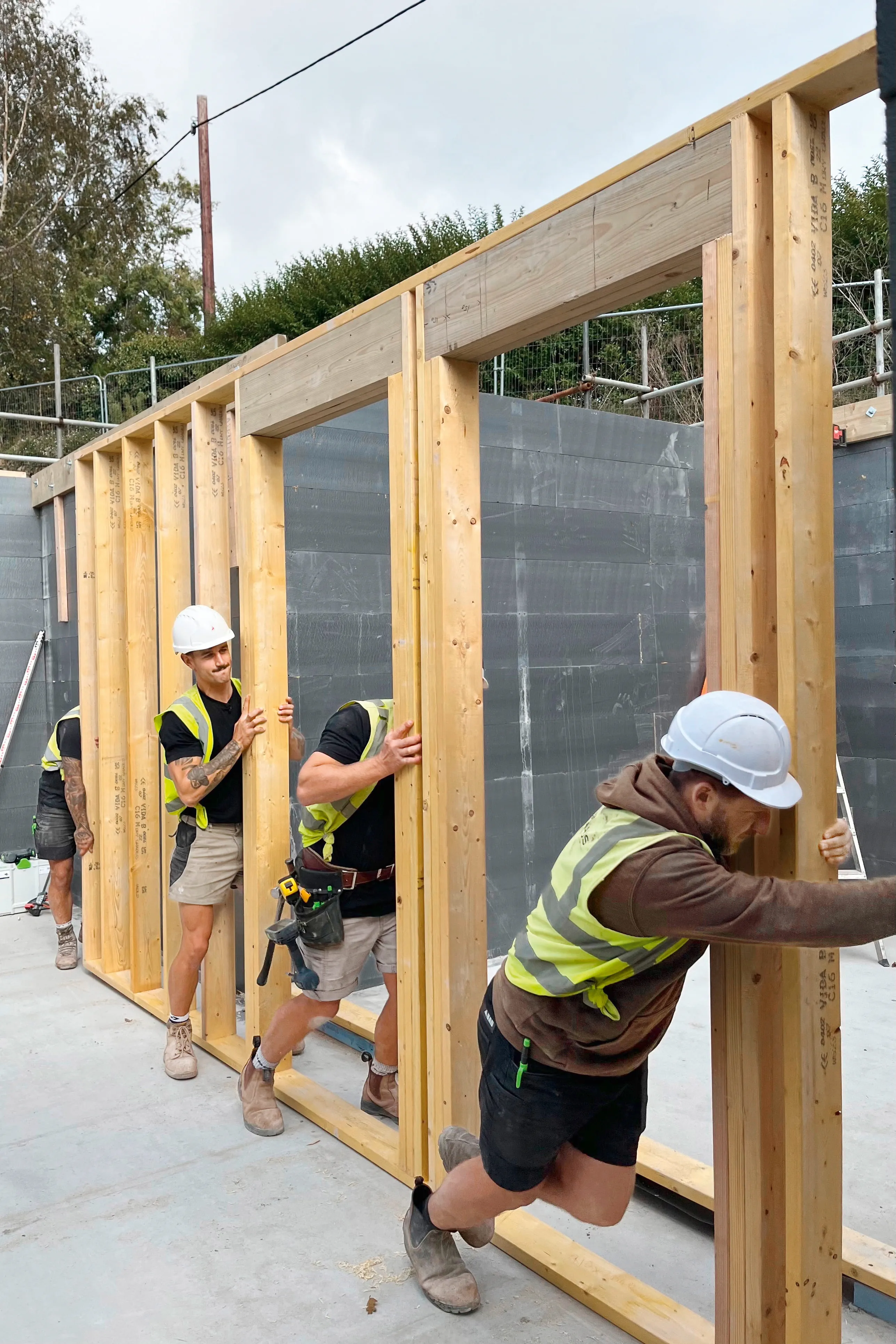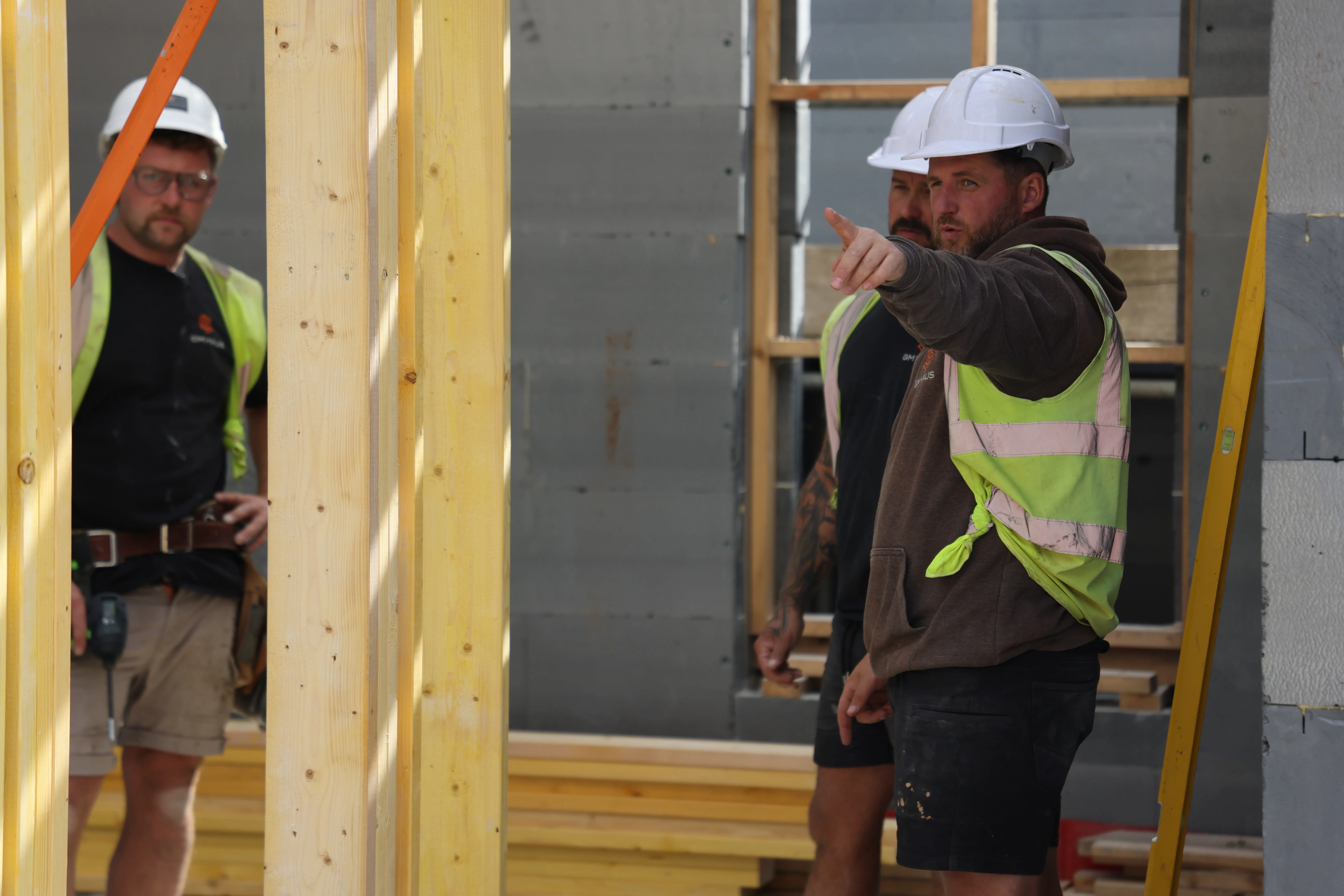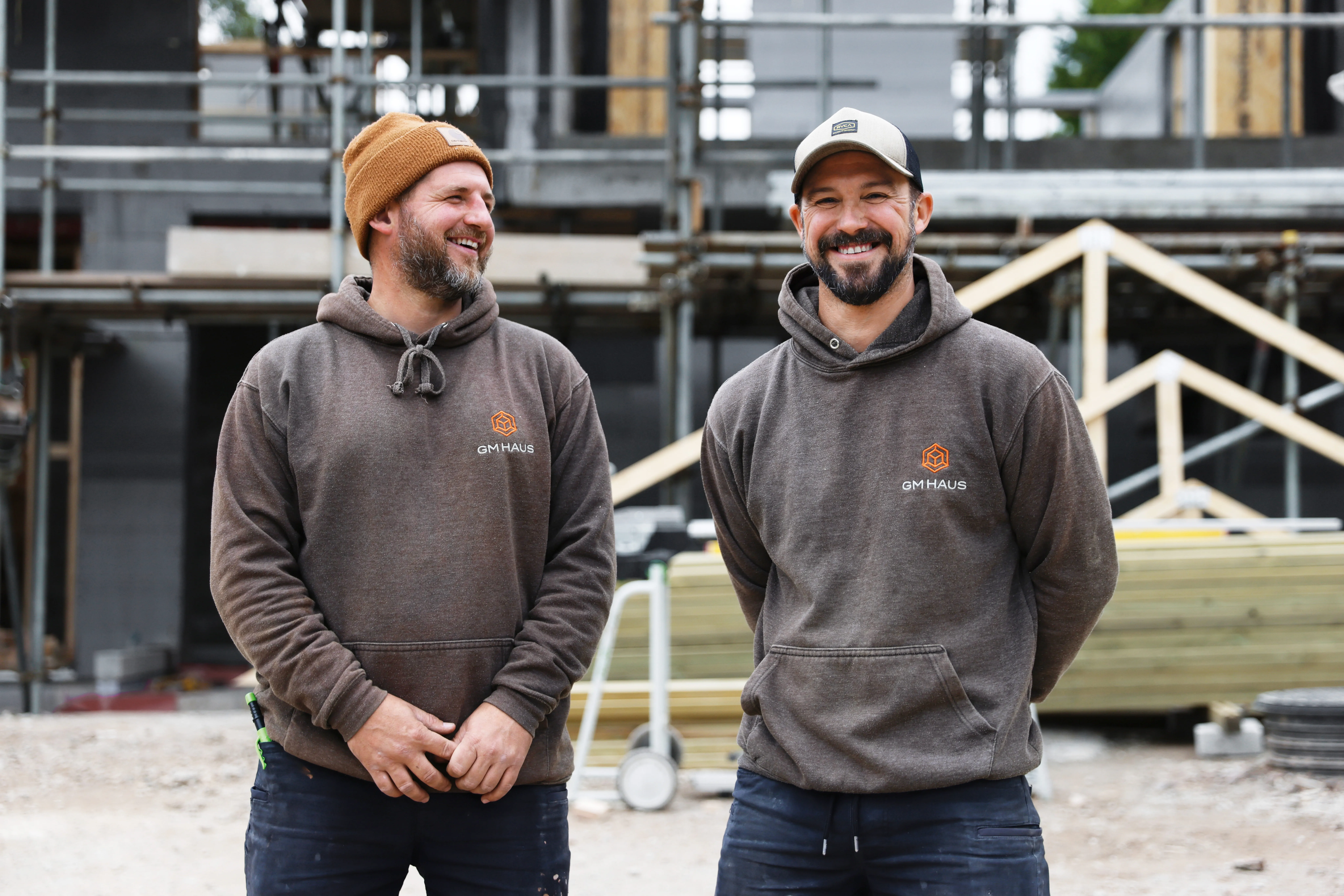 Projekt: dwupiętrowy rodzinny - nowoczesny, energooszczędny, z dużą ilością drewna. z dużą ilością drewna. Od lutego 2025 r. Sam i Nathan i ich zespół są na placu budowy niemal codziennie. Firma GM Haus, którą założyli pięć lat temu, jako "generalny wykonawca" faktycznie przejmuje cały proces budowy wraz ze wszystkimi branżami: od rozbiórki starego domu prace konstrukcyjne, wznoszenie nośnych konstrukcji drewnianych, aż po wykończenie wykończenia wnętrz. Wszystko było wymagające i wymagające. Ale to jest dokładnie to, co kochają i czego chcieli od samego początku.