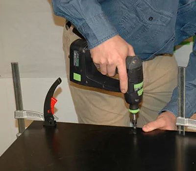 Po przykręceniu ram konstrukcji nośnej założyć okładziny wewnętrzne (poz. 2,7,13). Zamocować płyty za pomocą ścisków i wywiercić otwory pod wkręty. Przykręcić płyty do konstrukcji nośnej za pomocą wkrętów Spax (3,5 x 20 mm).